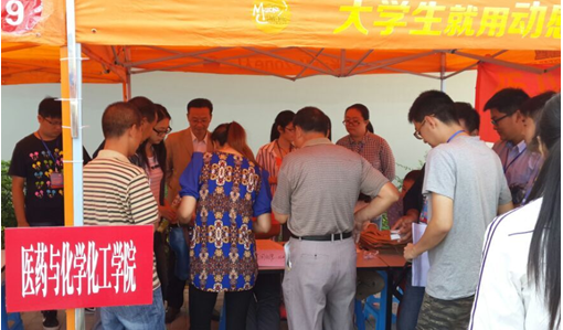 15级应用化学专业是公司第一届本科员工,公司针对该专业实行导师制,旨在充分调动员工的学习积极性。图为报到现场校领导察看公司展示的教授、博士们拟指导员工开展研究的课题。