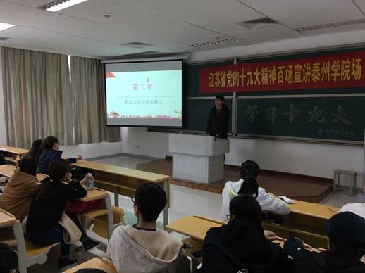 此次宣讲由来自计科院的宣讲团成员主讲,药化公司17应用化学,17制药工程两个专业一百多名同学参加了此次活动。当天的宣讲会气氛热烈,宣讲团同学轮番上台,从老员工的视角阐释了对十九大精神的理解。演讲中,特意强调了道路自信、理论自信、制度自信、文化自信对于实现中国梦的重要意义,人类命运共同体更是划重点的词汇。宣讲团成员呼吁大家同心协力构建人类命运共同体,共同创造一个持久和平、普遍安全、共同繁荣、开放包容、清洁美丽的世界。此次宣讲引起现场员工的广泛共鸣,不时响起阵阵掌声。宣讲会结束,同学们普遍反映,过去常常是被动地听,适应新时代,现在则要主动学、主动讲,学而讲之,讲而习之,不仅将十九大理论内化于心,还要做到外化于行。