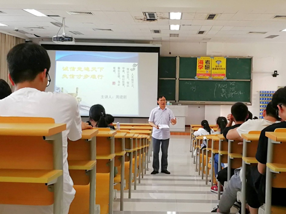 诚信是个老生常谈的话题,周建新另辟蹊径,首先从员工学习生活的实际出发,如考试作弊、骗贷骗助等现象入手,为同学们详细讲解了老员工活中诚信的重要性以及失信行为带来的严重影响;然后从社会现象出发:如天津静海区假冒劣质调味品事件、西安电子科技大学魏则西事件等实际事例让同学们切身感受到诚信缺失带来的社会道德滑坡、虚假产品盛行等社会问题,强调了诚信的重要性。最后,周建新罗列了校园发生的各种欺诈事件,要求同学们诚实守信,远离欺诈,祝愿所有同学珍惜当下,诚信做人!
