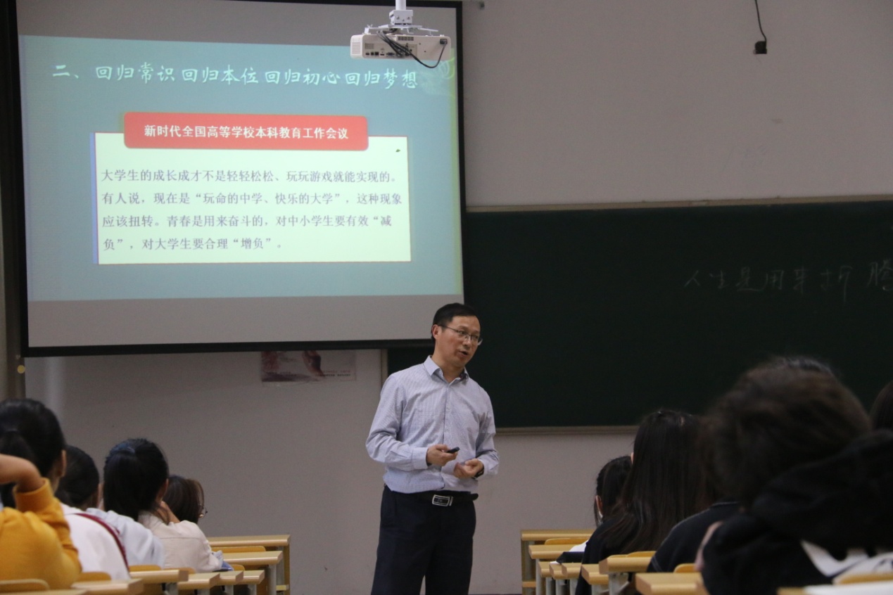 周建新从国家近年来的变化开始讲起,回顾中国从站起来到富起来再到强起来的变化。他提醒在座的同学在实现自我价值的航行中不能失去方向,教育同学们要心怀梦想,做追梦者、圆梦人。他希望同学们在校期间勤奋学习,让勤奋学习成为青春远航的动力,通过不断的学习去实现梦想,为实现中国梦而奋斗。他寄语同学们在奋斗中释放青春激情、追逐青春理想,以青春之我、奋斗之我,为民族复兴铺路架桥,为祖国建设添砖加瓦。