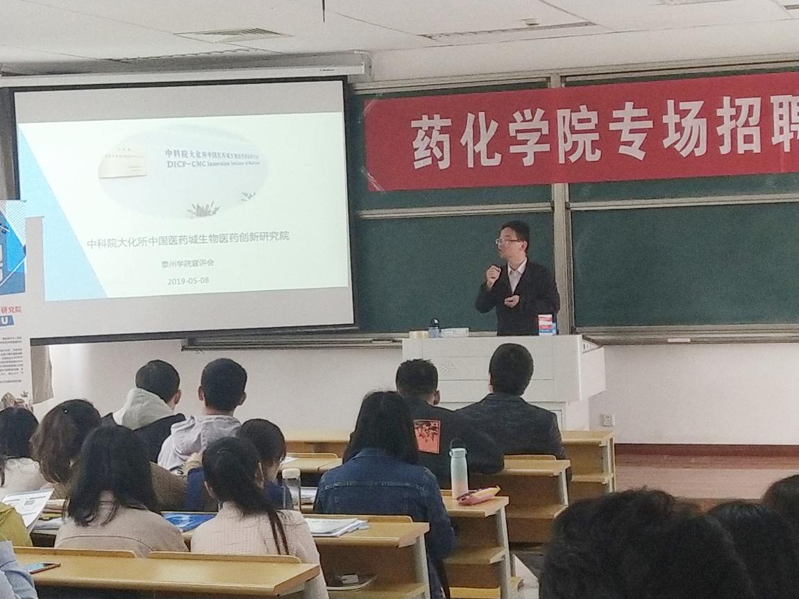 5月8日上午,公司在教学楼1307教室针对2016级制药专业员工举办中科院大化所专场实习和就业宣讲会,公司副书记于晓萍、制药工程王豪老师、学工办朱涛老师全程参加此次宣讲会。