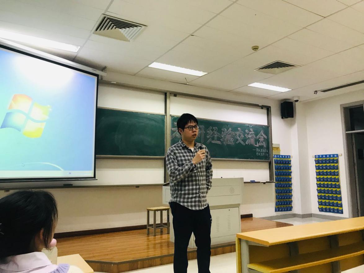 王浩则,主要介绍了数学的复习方法。他的做法主要有三步,第一步是把汤加凤的视频课从头看到尾,把他讲的每一个知识点都记在笔记本上。第二部是把笔记本上的东西都弄懂,顺带着刷题。第三部是做真题。还分享了他自己复习六级的独特方法,让在座的学弟学妹们获益匪浅。