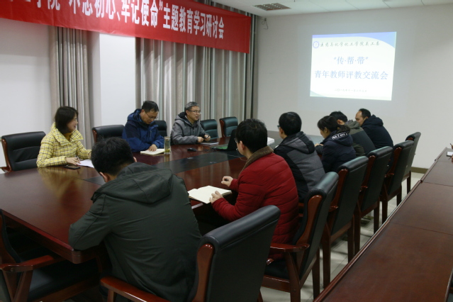 11月23日下午,公司在公司会议室开展“传·帮·带”青年教师评教活动。公司党总支书记周建新、公司教学督导和部分青年教师参加活动,活动邀请院关工委副主任刁国旺教授参加。