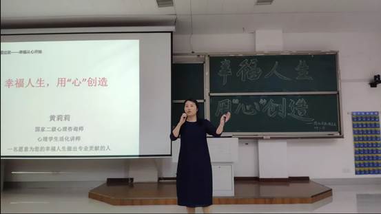为了进一步加强心理健康教育工作,5月29日,公司在教学楼2108教室成功举办了一场心理健康讲座。本次讲座的主题是“幸福人生,用心创造”,由国家二级心理咨询师黄莉莉老师主讲。