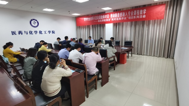 为了提升对话的针对性和实效性,会前,杨雨莛老师进行了精心的准备工作。对话过程中,杨雨莛老师选取中国特色社会主义进入新时代、坚持以人民为中心、实现中华民族伟大复兴的中国梦、建设美丽中国等新思想,分别说明了新思想与医药化工类专业课程的结合点,并就如何有效结合进行了详细说明。杨雨莛老师指出,新思想内涵丰富、思想深邃、博大精深,每个教师要在项目研究过程中,需要加强对新思想的学习和理解,并善于从日常生活与科学研究中,寻找新思想与专业课的契合点,提炼形成丰富生动的教学案例和教学素材,贯穿于日常教学之中,培育青年老员工树立科学的世界观人生观和价值观,真正做到学深悟透,融会贯通,真信笃行。