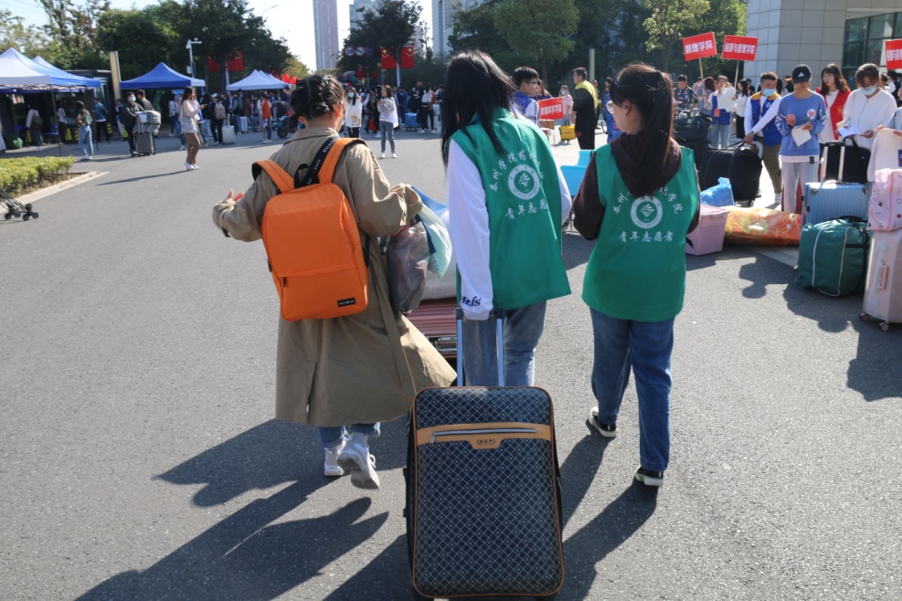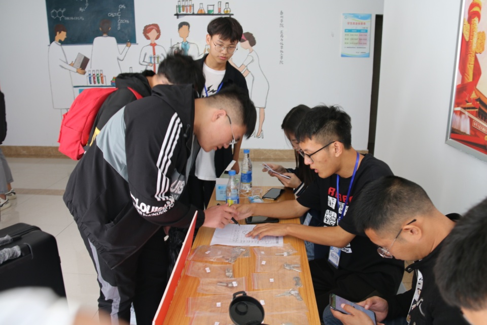 迎新当天,按照前期分工,各部门有条不紊的开展迎新工作。北门,志愿者们帮助新生收运行李;图书馆前,学长们为新生暂时存放物品,引导新生去图书馆报到;图书馆内,负责报到的老师和同学认真核对信息,办理入学手续;篮球场上,学长们帮助新生认领和搬运行李;宿舍楼下,学长们发放钥匙与校园卡,把新生引导到宿舍,并安顿下来。