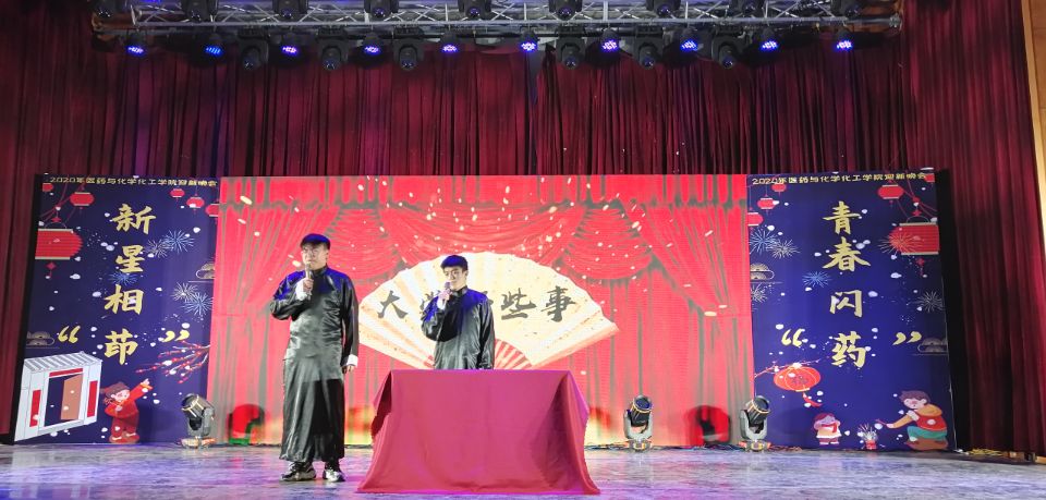 接下来是精彩纷呈的演出。相声《大学那些事》让我们一下子了解了老员工活中诸多的学习和生活百态;动漫社的《一骑当千》带你跳跃时空的框架,融入如梦如幻的动漫世界;跆拳社的跆舞表演展现老员工的武功也能行云流水、登峰造极;小品《面试》在嬉笑中告诉我们大学社团的去伪存真。随后,公司党总支书记周建新和副书记于晓萍老师为今年获得药化之星荣誉称号的35位同学进行了颁奖。诗朗诵《我的南方和北方》、舞蹈《触摸天空》和歌曲串烧告诉我们五湖四海集聚一堂的缘分,青春易逝的不变规律,告诫我们要不负韶华,珍惜时光;期间欢乐的互动环节给了新生们意外的惊喜。好戏一个接着一个,叫好声此起彼伏,同学们精心准备的演出赢得了在场老师和同学热烈的掌声。伴随着歌曲《夜空中最亮的星》的唱响,晚会在动听的音乐声中落下帷幕。