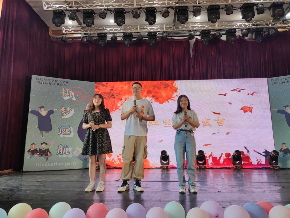 本次欢送会充分展示了药化学子的青春活力和靓丽风采,为2021届毕业生营造了温馨的毕业氛围,祝愿他们谨记“敦尚行实,明体达用”校训,乘风破浪,扬帆远航!