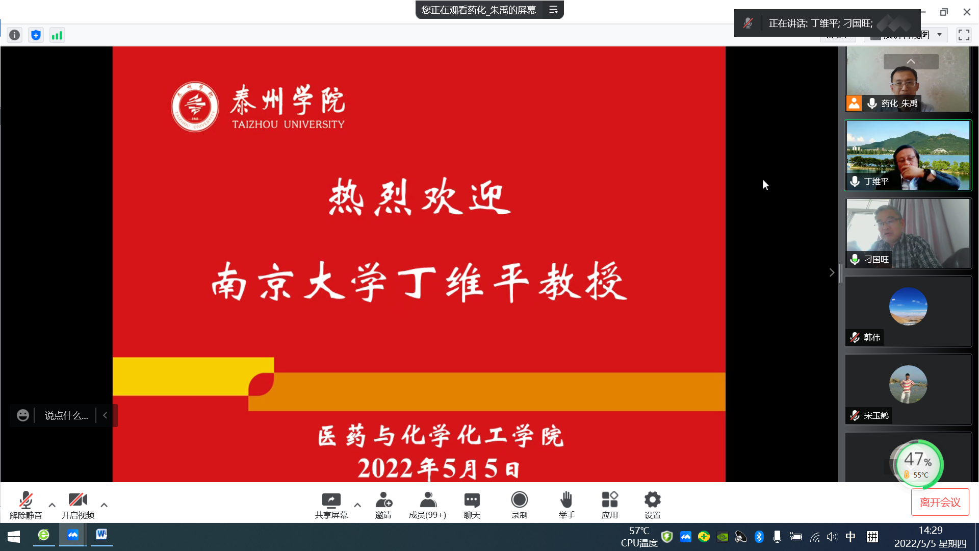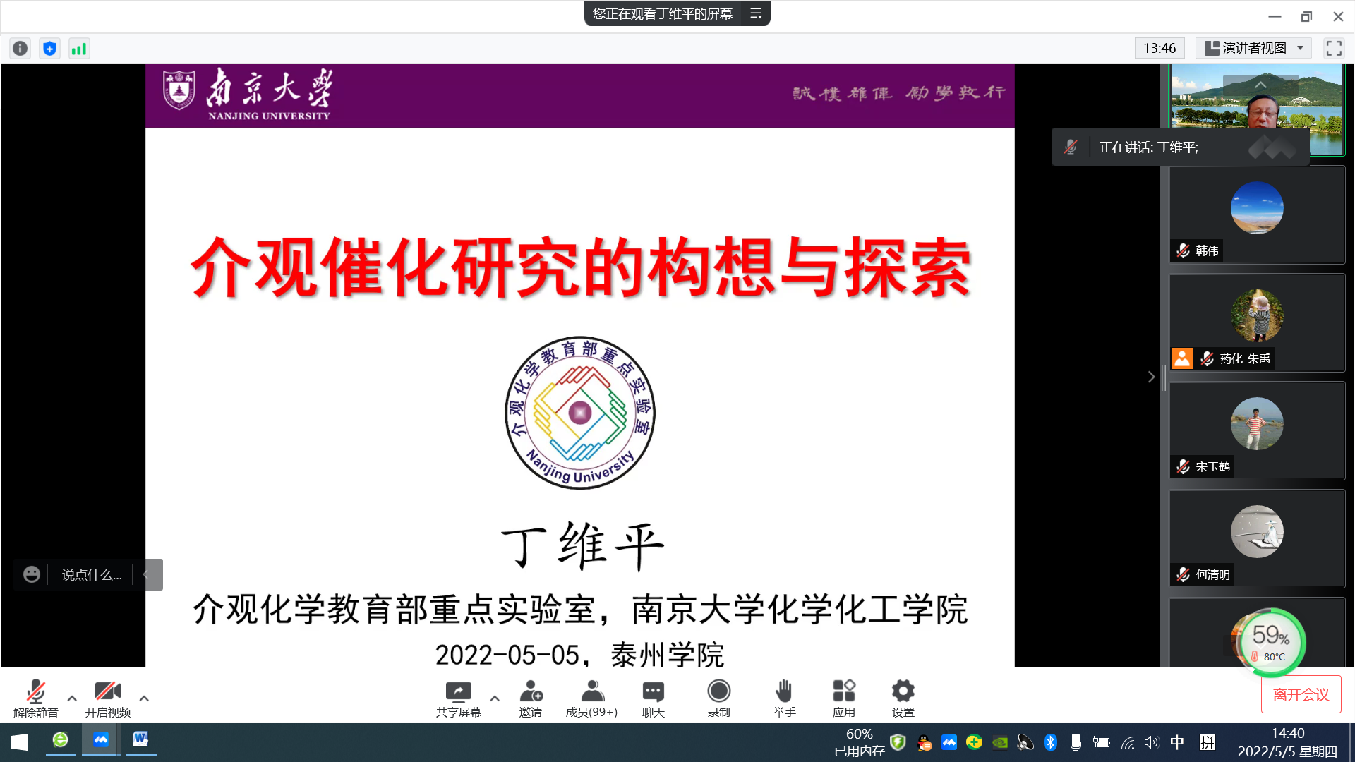 5月5日下午,南京大学丁维平教授应邀为公司师生作“介观催化研究的构想与探索”的线上学术报告,报告由朱禹经理助理主持。公司教师和部分员工聆听了报告。