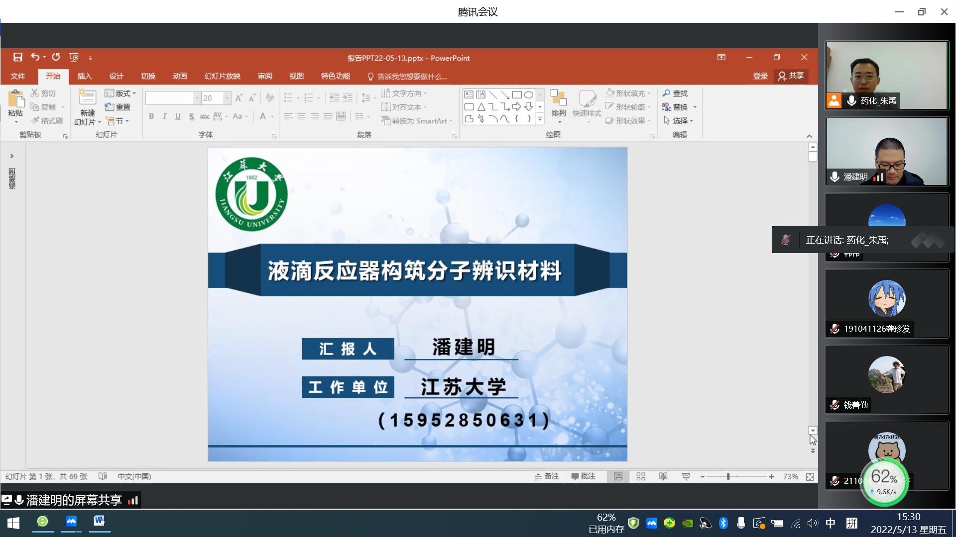 5月13日下午,江苏大学化学化工公司教授、博士生导师潘建明应邀为公司师生作题为《液滴反应器构筑分子辨识材料》的学术报告,报告由朱禹经理助理主持。公司教师和部分员工聆听了报告。