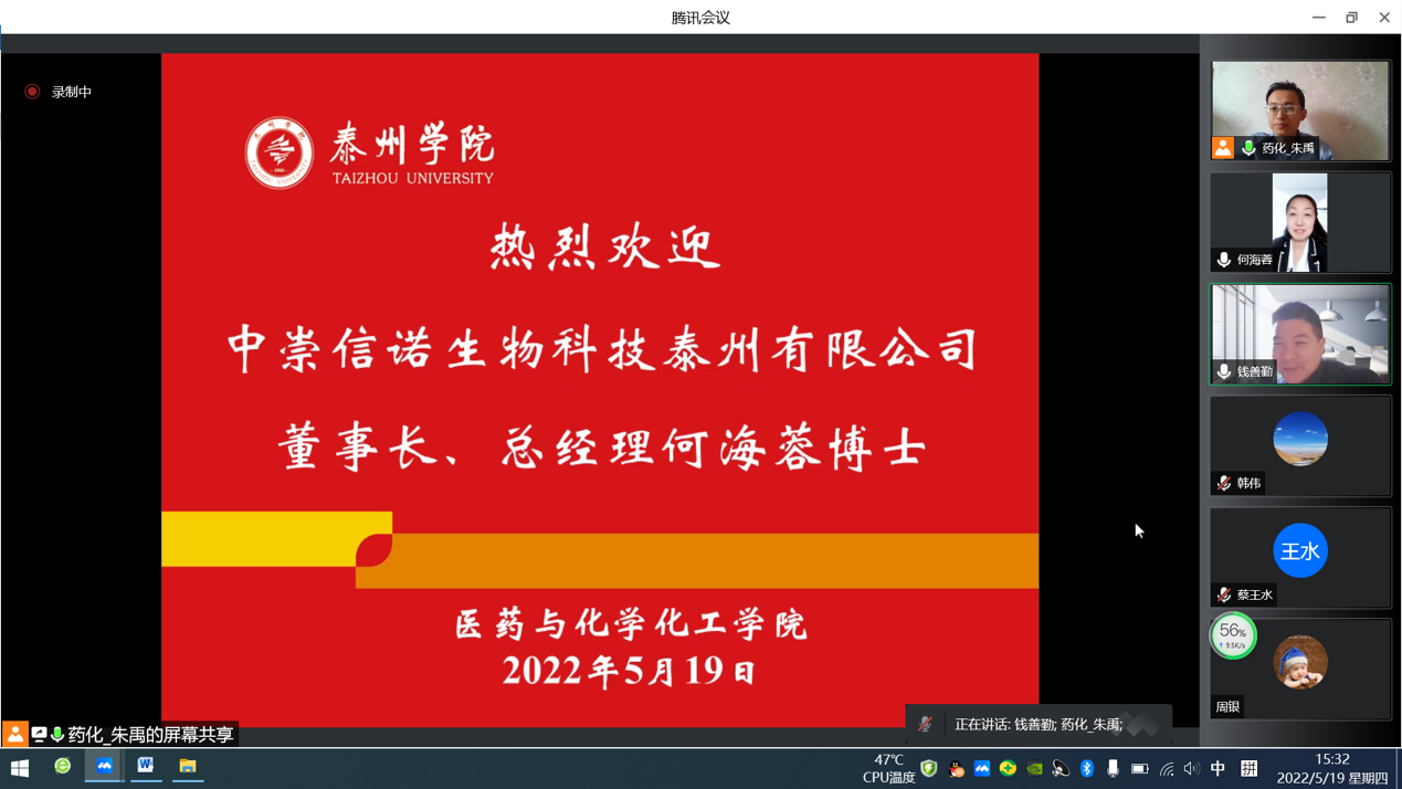 5月19日下午,中崇信诺生物科技泰州有限公司董事长、总经理何海蓉博士应邀为公司师生作《中国医药城新“兽”药研发与评价“6G”中心建立与应用》的学术报告,报告由公司经理助朱禹理主持。校科研处处长助理周银及我院师生参加了此次学术报告。