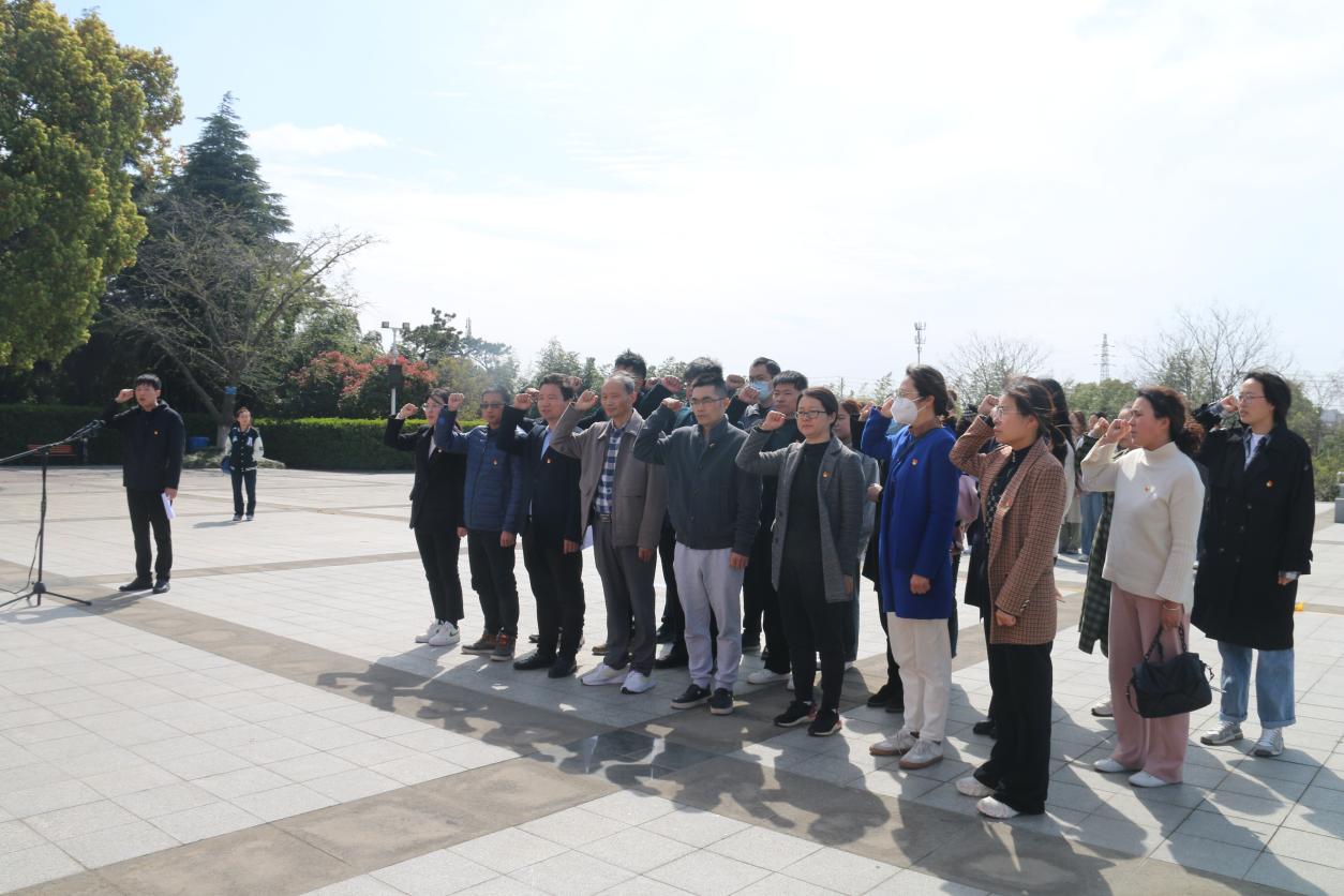 到达烈士陵园后,全体党员瞻仰了革命烈士纪念碑、敬献花篮,并鞠躬致敬,表达对先烈的敬仰和哀思。在烈士纪念碑前,公司党总支书记徐小兵领誓,全体党员同志重温了入党誓词。