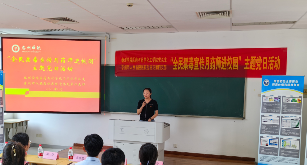 禁毒工作事关国家安危、民族兴衰、人民福祉,需要全民参与,久久为功。6月15日,医药与化学化工公司党总支与泰州市人民医院医技党总支第四支部共同举办“全民禁毒宣传月药师进校园”主题党日活动。