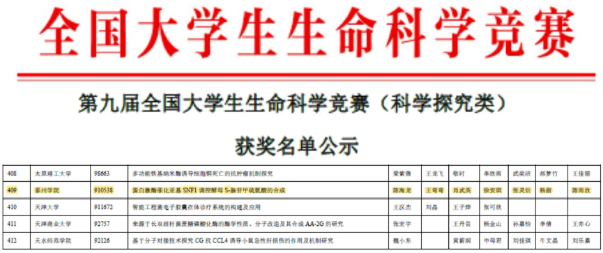 经过专家评审,公司陈海龙和王弯弯老师指导的参赛作品“蛋白激酶催化亚基SNF1调控酵母S-腺苷甲硫氨酸的合成”荣获国赛二等奖。