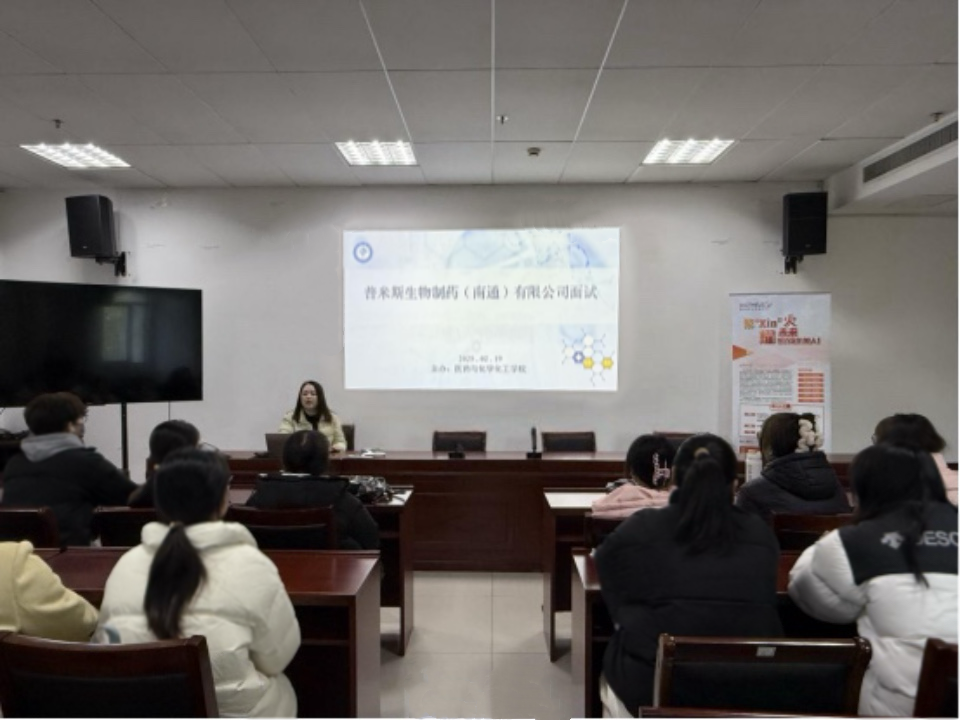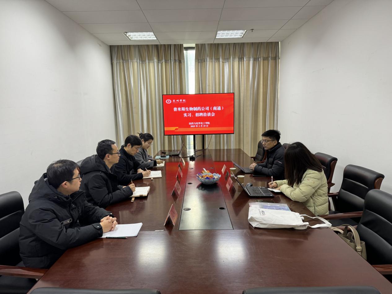为进一步拓宽就业渠道,促进人才供需匹配精准对接,近日,william威廉英国官网邀请普米斯生物制药(南通)有限公司来校开展专场招聘会。公司党总支副书记、副经理张红祥,副经理朱禹、院学工办主任、就业辅导员以及2025届毕业生代表参加活动。