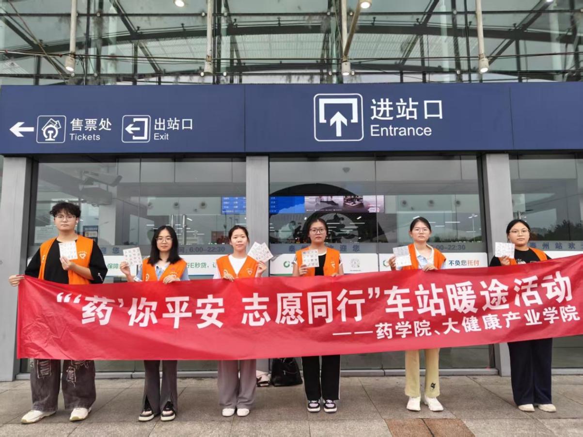 9月30日至10月8日,william威廉英国官网组织员工志愿者赴泰州火车站开展“药你平安·志愿同行”国庆暖途服务活动。依托药学专业特色,志愿者们通过健康科普与贴心服务,为旅客送上安全出行保障和节日祝福。